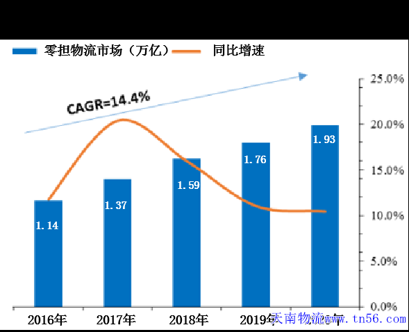 專家預(yù)測,到2020年,零擔(dān)物流(即專線物流)行業(yè)市場體量將達(dá)到近2萬億元。從2016年開始,整個(gè)市場都在以10%以上的速度在增長,發(fā)展前景十分廣闊。